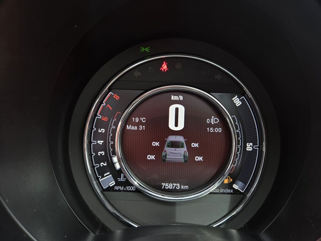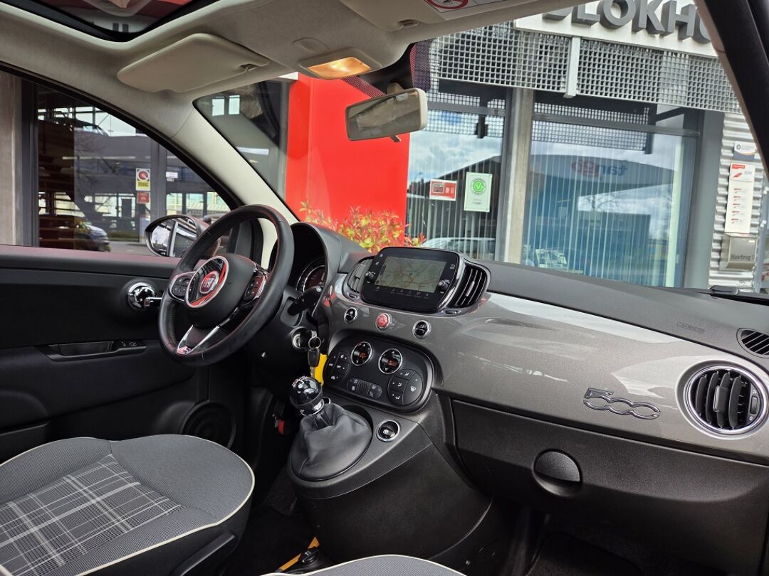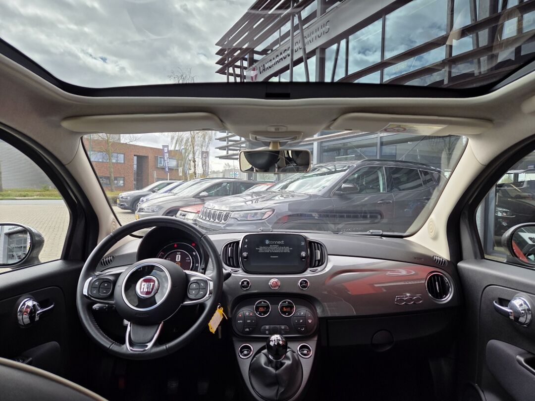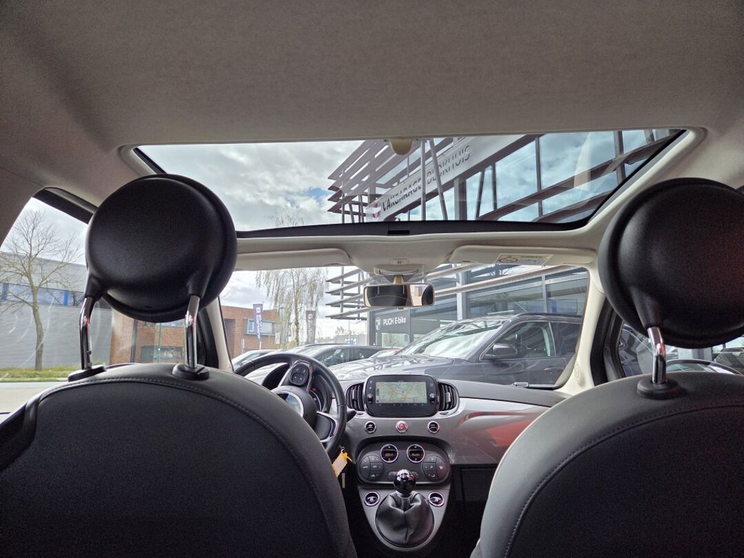 In het moderne verkeer heb jij achter het stuur van de Fiat 500 altijd de controle. Deze auto uit 2019 heeft 75865 kilometer op de teller staan. Heb jij een vlotte rijstijl? Dan is deze Fiat met zijn zuinige maar pittige motor geknipt voor jou. Met het grote glazen panoramadak geniet jij van maximale lichtinval. Bij de uitrusting van deze auto horen onder meer 15 inch lichtmetalen velgen, LED-dagrijverlichting, in delen neerklapbare achterbank en snelheidsafhankelijke stuurbekrachtiging.