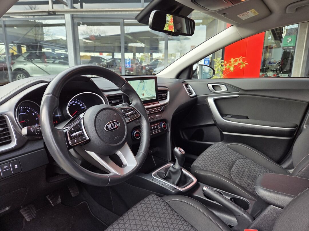 Boem is ho? Dat is verleden tijd. De achteruitrijcamera laat precies zien hoeveel ruimte u achter nog heeft! Een veiligheidsverhogende optie is de ingebouwde spraakbediening. Terwijl u uw ogen op de weg houdt, bedient u de auto met uw stem. Deze Kia Ceed is 'connected'. Belangrijke functies worden permanent gemeten en zijn uit te lezen via een speciale app, ook op afstand. Met de routebegeleiding van het navigatiesysteem kunt u zich volledig op het verkeer concentreren. Dankzij electronic climate control is het interieur behaaglijk warm of verfrissend koel. Deze Kia is voorzien van DAB ontvangst, regensensor, cruise control, automatisch dimmende spiegels, lederen stuur en centrale deurvergrendeling met afstandsbediening.