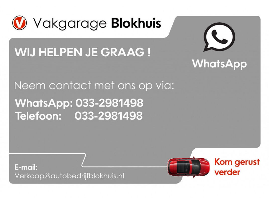 Kom langs voor een proefrit of een offerte, u bent van harte welkom! Heeft u vragen over deze occasion? U kunt ons zowel bellen als een WhatsApp bericht sturen via ons vaste nummer: 033-2981498 of mail naar verkoop@autobedrijfblokhuis.nl, Uiteraard is inruil van uw huidige auto bij ons mogelijk.