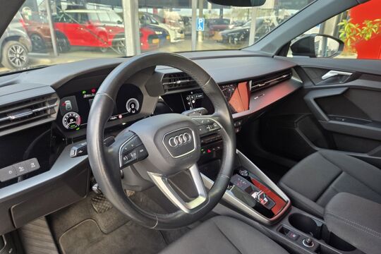 De eendrachtige samenwerking van de benzinemotor en de elektromotor geeft deze Audi A3 Sportback zijn geweldige rijkwaliteiten. De krachtige hybridemotor van deze auto is gekoppeld aan een automatische transmissie. Zijwaartse g-krachten worden solide opgevangen door de sportstoelen. De matrix LED-verlichting is het allernieuwste op het gebied van autoverlichting. Altijd maximaal licht op de weg, zonder tegenliggers te hinderen! De uitmonstering van deze auto wordt gecompleteerd door onder meer 17 inch lichtmetalen velgen, warmtewerend glas, dakspoiler, in delen neerklapbare achterbank en LED-achterlichten.