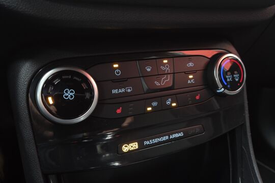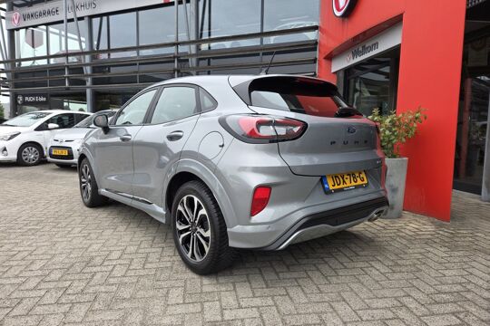 U weet altijd hoe de auto eraan toe is dankzij Connected Services. Ook handig voor de garage en de wegenwacht. Even de app uitlezen en klaar! Laat u onderweg niet afleiden, de bediening van het audiosysteem en ook het navigatiesysteem gaat met knoppen op het stuur en met spraak. Natuurlijk is de audio-installatie voorzien van DAB-ontvangst. Smartphone opladen onderweg? Dat gaat supergemakkelijk door de draadloze oplaadmogelijkheid voor telefoons. Aan boord van deze Ford Puma is een achteropkomend verkeer waarschuwing voor extra veiligheid. Parkeersensoren zijn een waardevolle toevoeging aan deze auto. De sensoren waarschuwen tijdens het parkeren en voorkomen schade aan de auto. De uitrusting van deze auto is met regensensor, cruise control, sportstuurwiel, airconditioning, automatisch dimmende spiegels en boordcomputer behoorlijk compleet.