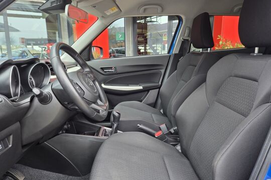 In de Suzuki Swift heeft jouw veiligheid en die van jouw omgeving prioriteit. Deze Suzuki Swift is ook behulpzaam als het gaat om een rechte koers. Het Lane-keeping systeem signaleert en corrigeert als je onbedoeld de rijstrooklijnen dreigt te overschrijden. Op een kop-staartbotsing zit niemand te wachten. Daarom is de forward collision warning onderweg constant alert en berekent via een sensor de veilige afstand tot voorliggers. Vermoeidsheidsherkenning herkent tekenen van vermoeidheid bij de bestuurder. Het systeem voorkomt dat er ongelukken gebeuren doordat de bestuurder in slaap valt. De auto is ook uitgerust met hill hold functie, Abs - anti blokkeer systeem met brake assistant en bandenspanningcontrolesysteem.
