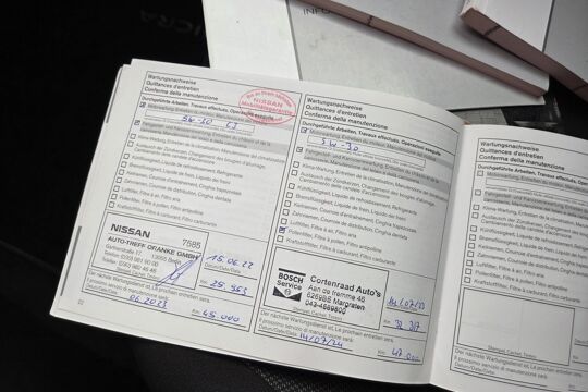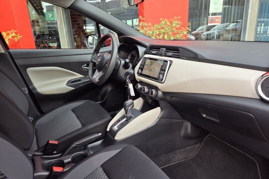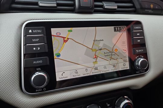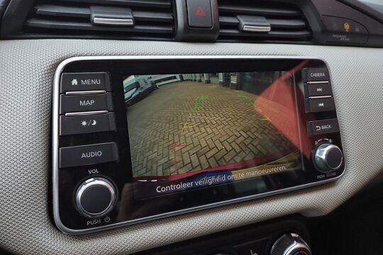 De achteruitrijcamera brengt precies in zicht wat zich achter u bevindt en toont een glashelder beeld op hoge resolutie. Een geluidssignaal waarschuwt hoeveel ruimte u nog heeft. Wegwijs in elke wijk, stad of reisbestemming? Daarvoor zorgt het navigatiesysteem! De sensoren van de achteropkomend verkeer waarschuwing houden zicht op de dode hoeken achter u. Te weinig afstand tot de achterligger? Het systeem geeft direct een signaal. Voor de audiobediening hoeft u uw ogen geen seconde van de weg te houden. Alle functies bevinden zich op het stuur, onder uw vingertoppen. Met de DAB-ontvanger luistert u naar glasheldere digitale radio. Deze Nissan is voorzien van cruise control, airconditioning, lederen stuur en boordcomputer.